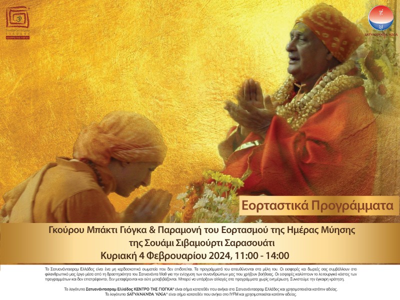 Η 5η Φεβρουαρίου σηματοδοτεί την ημέρα που η Σουάμι Σιβαμούρτι Σαρασουάτι μυήθηκε στην Πούρνα Σαννυάσα από τον γκούρου της, την μεγάλη πνευματική αυθεντία, τον Σρι Σουάμι Σατυανάντα Σαρασουάτι.
